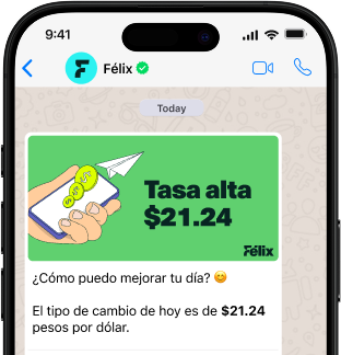 Empieza la conversación con Félix, indica la cantidad que quieres enviar, a quién quieres enviar y el método de pago que usarás.